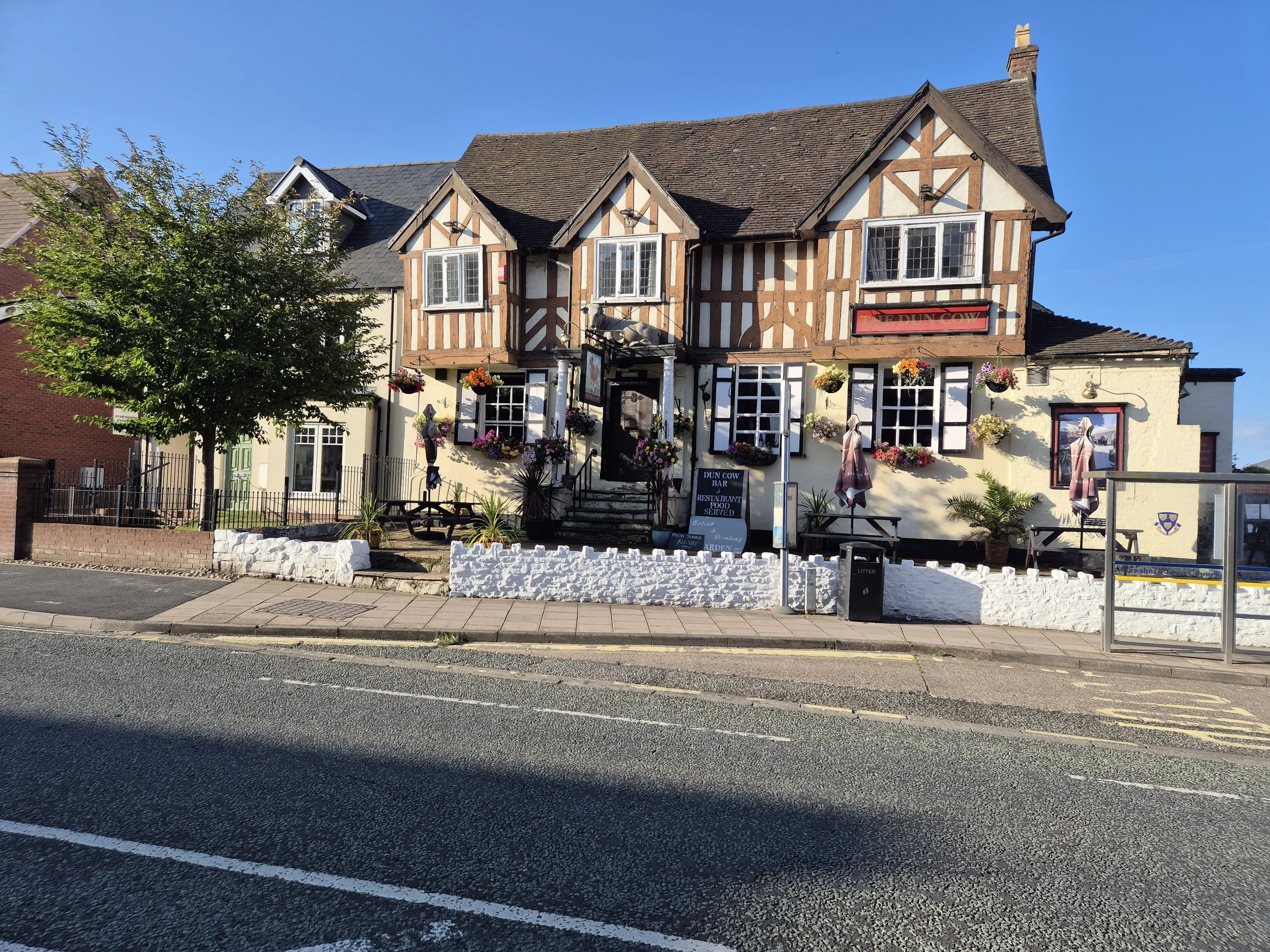 The Dun Cow is one of the oldest pubs in the UK. Built around 1085 by Roger de Montgomery, the First Earl of Shrewsbury, it served as a hostel for skilled masons supervising the building of St. Peter and St. Paul (later called The Abbey). It had its own brewery by 1105 and likely existed even earlier.